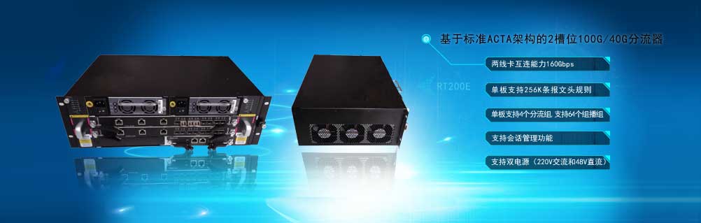 RT200設(shè)備是一款支持網(wǎng)絡(luò)行為審計系統(tǒng)、網(wǎng)絡(luò)內(nèi)容審計系統(tǒng)和入侵檢測系統(tǒng)的高速流量預(yù)處理平臺。